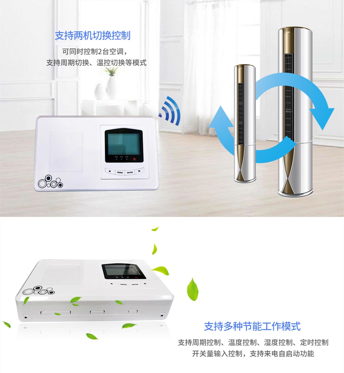 ZHT-ACmate-X 配備LCD人機(jī)交互界面,支持嵌入式WEB,具有以太網(wǎng)、RS485、無線(選配)三種通信方式;接口簡單,組網(wǎng)方便、靈活;可實(shí)時檢測空調(diào)用電狀態(tài),監(jiān)測空調(diào)運(yùn)行動態(tài);具有定時開關(guān)機(jī)、溫度控制、濕度控制、周期控制等多種節(jié)能模式;兼容各種空調(diào)機(jī)型;支持多機(jī)組網(wǎng)切換控制;具有告警、用電量、開關(guān)機(jī)記錄等信息的保存與查詢功能。