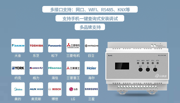 ZHT-VRFGT多聯(lián)機中央空調(diào)網(wǎng)關主要解決中央空調(diào)協(xié)議不開放和各個中央空調(diào)廠家協(xié)議不統(tǒng)一的問題,實現(xiàn)一個網(wǎng)關統(tǒng)一管理多個不同品牌的中央空調(diào);設備自帶LCD液晶顯示屏,現(xiàn)場可直接在液晶顯示屏上查看網(wǎng)關信息、修改網(wǎng)關配置參數(shù)等功能;同時支持手機直連中央空調(diào)網(wǎng)關進行現(xiàn)場調(diào)試操作,便捷地實現(xiàn)對不同品牌的多聯(lián)機中央空調(diào)的遠程集中管理功能。