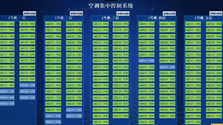 集中監(jiān)管,一觸即達:后勤管理人員在中央控制室,即可一覽所有寢室的空調(diào)運行狀態(tài)。遇到突發(fā)的天氣變化,可一鍵批量調(diào)整所有空調(diào)的運行模式,管理效率倍增。